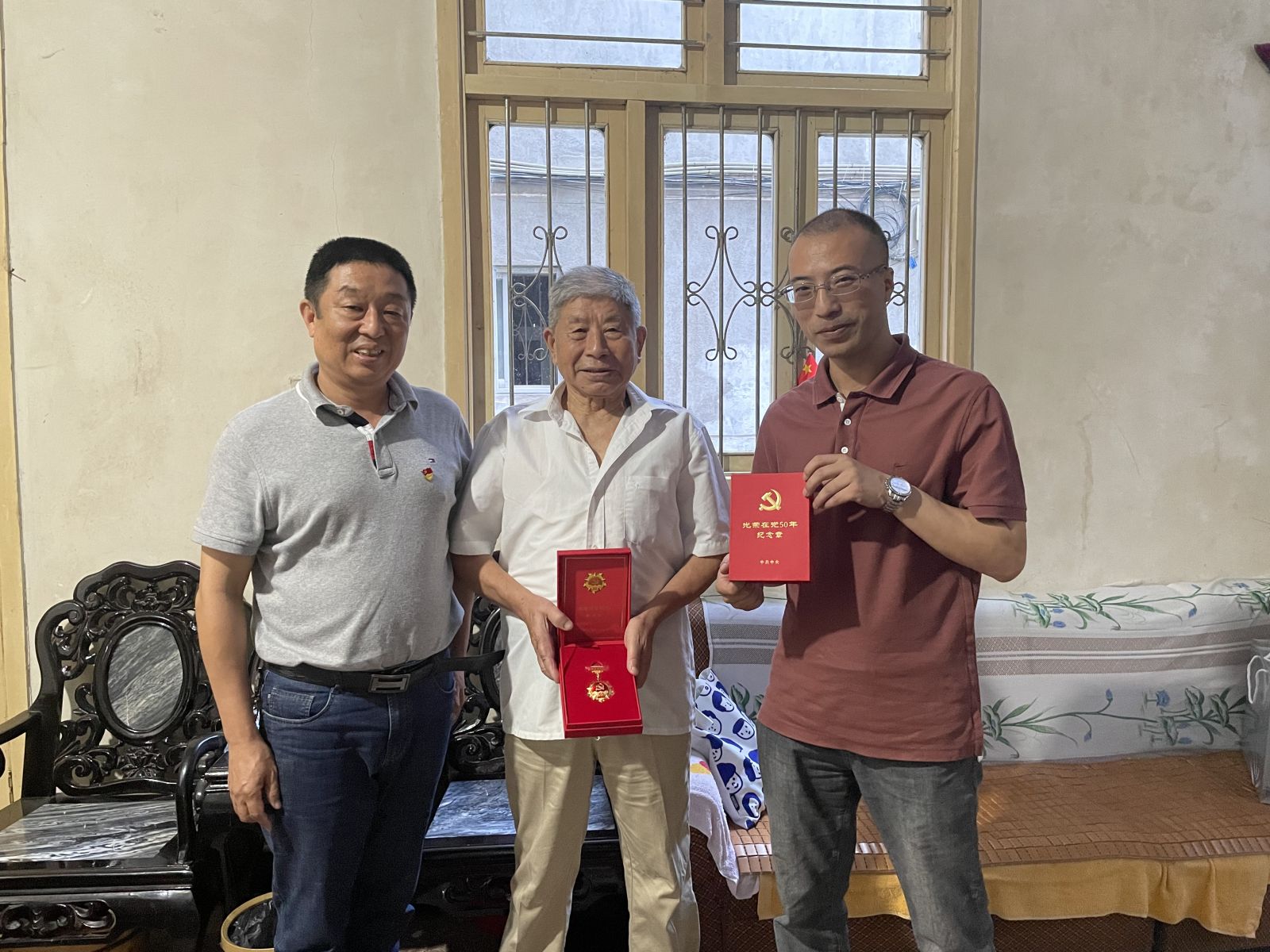 2021年06月23日,黨支部書記周遠慧,副書記呂田明慰問公司老黨員葉慶松,并發(fā)放慰問品、慰問金及50周年黨齡紀念章;慰問公司老黨員、原支部書記王宜泉,并發(fā)放慰問品、慰問金。